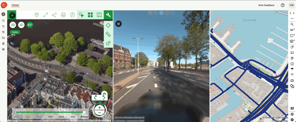 Ook AI-InfraSolutions is gevestigd in Eelde en richt zich sinds 2018 op de digitalisering van de openbare ruimte met behulp van kunstmatige intelligentie. Met een vloot van 25 voertuigen, uitgerust met 360°-camera’s, LiDAR-scanners en nauwkeurige positiebepalingssystemen, verzamelt het bedrijf grootschalige geodata op straatniveau.